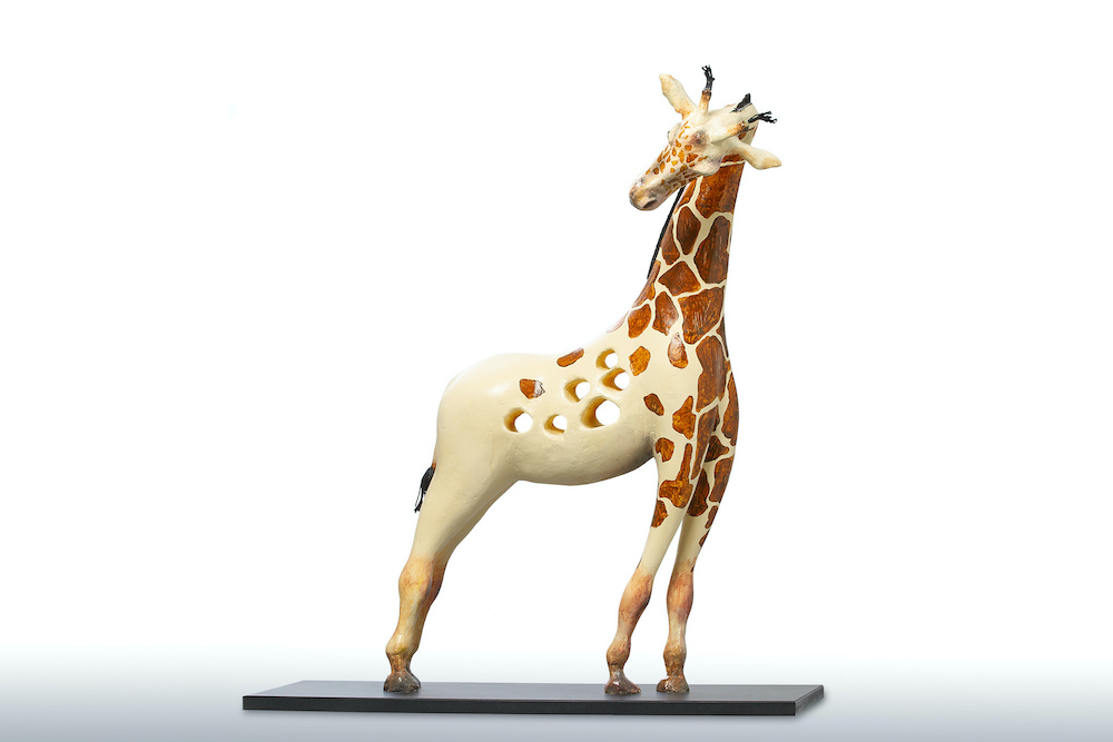 Like a children’s story on the creative stage of BigApple Design, Sandro Gorra’s work enhances the drama of water which, when it dries up, goes away. The giraffe Alice captures the moment of drinking, “like a parable of beauty bent on the problems that the stupidity of men is creating for the whole Planet, with desertification and so on” (Sandro Gorra quotes). And with the Milanese artist’s usual irony mixed with poetry in which the spots on the cloak slide down, adding spectacle to the problem. An iconoclastic language to show the daily moment.