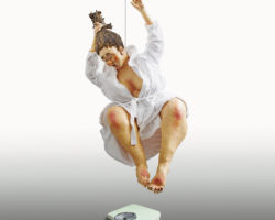 Sought after in good milieus, when Lucia entered she left her mark because of the soft fatness that she managed with exuberance and sensuality. Until her graceful feet touching the scales did not threaten a disaster: the kilograms on the display rose to such high levels that she risked a sudden descent in her social status. Terrified at the idea of losing attentions and invitations, Lucia decided an extreme move. She raised herself and raised the question.