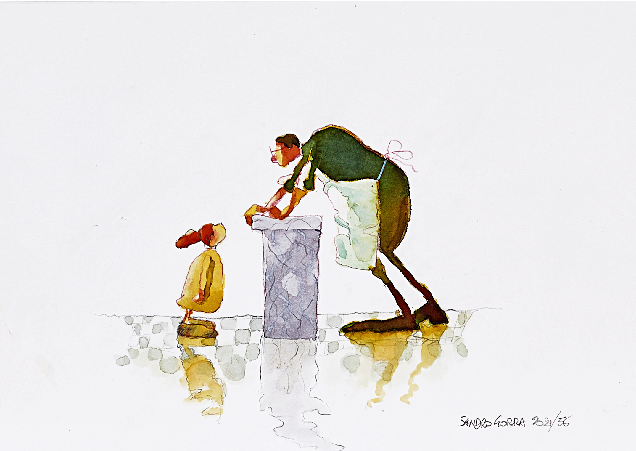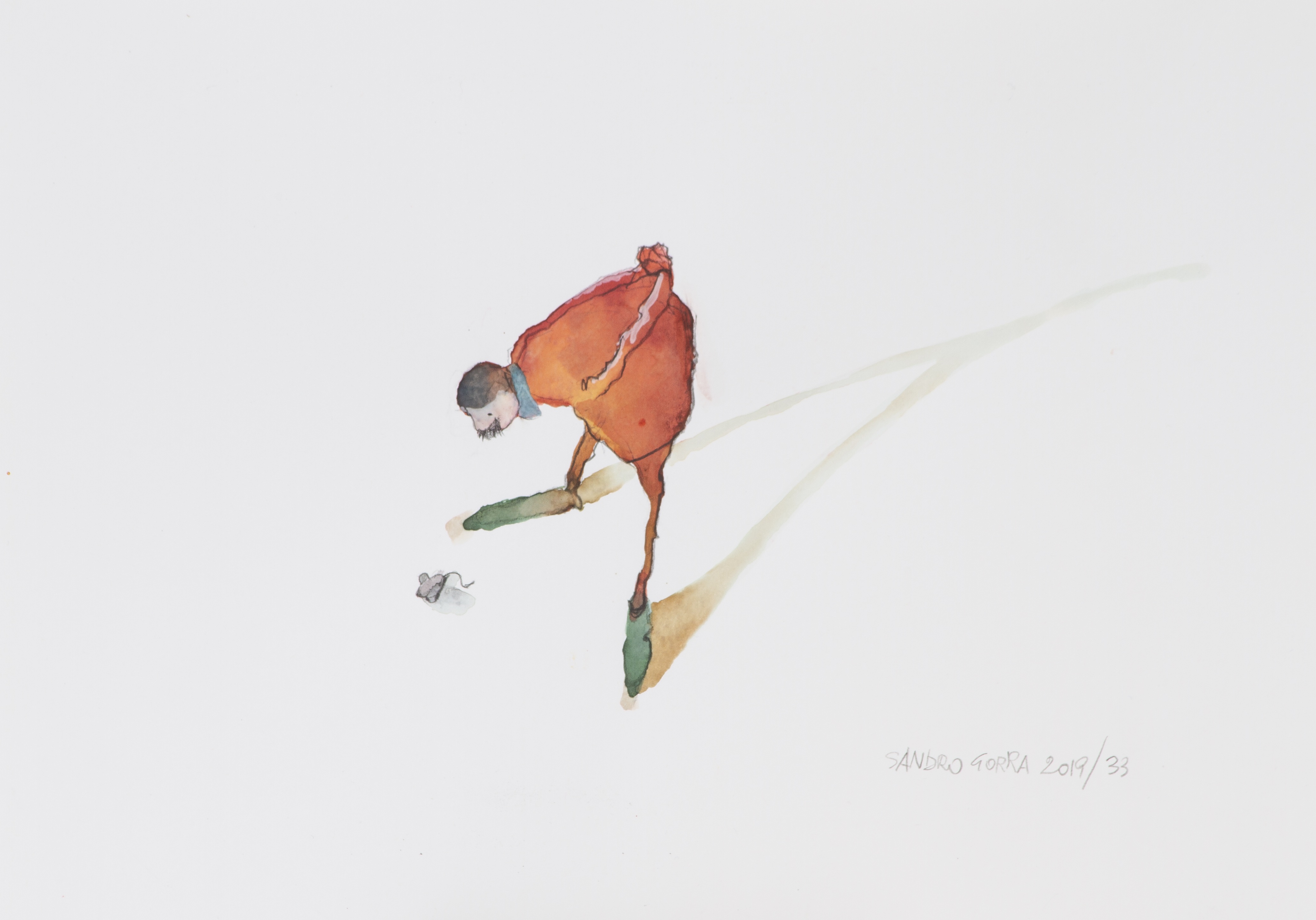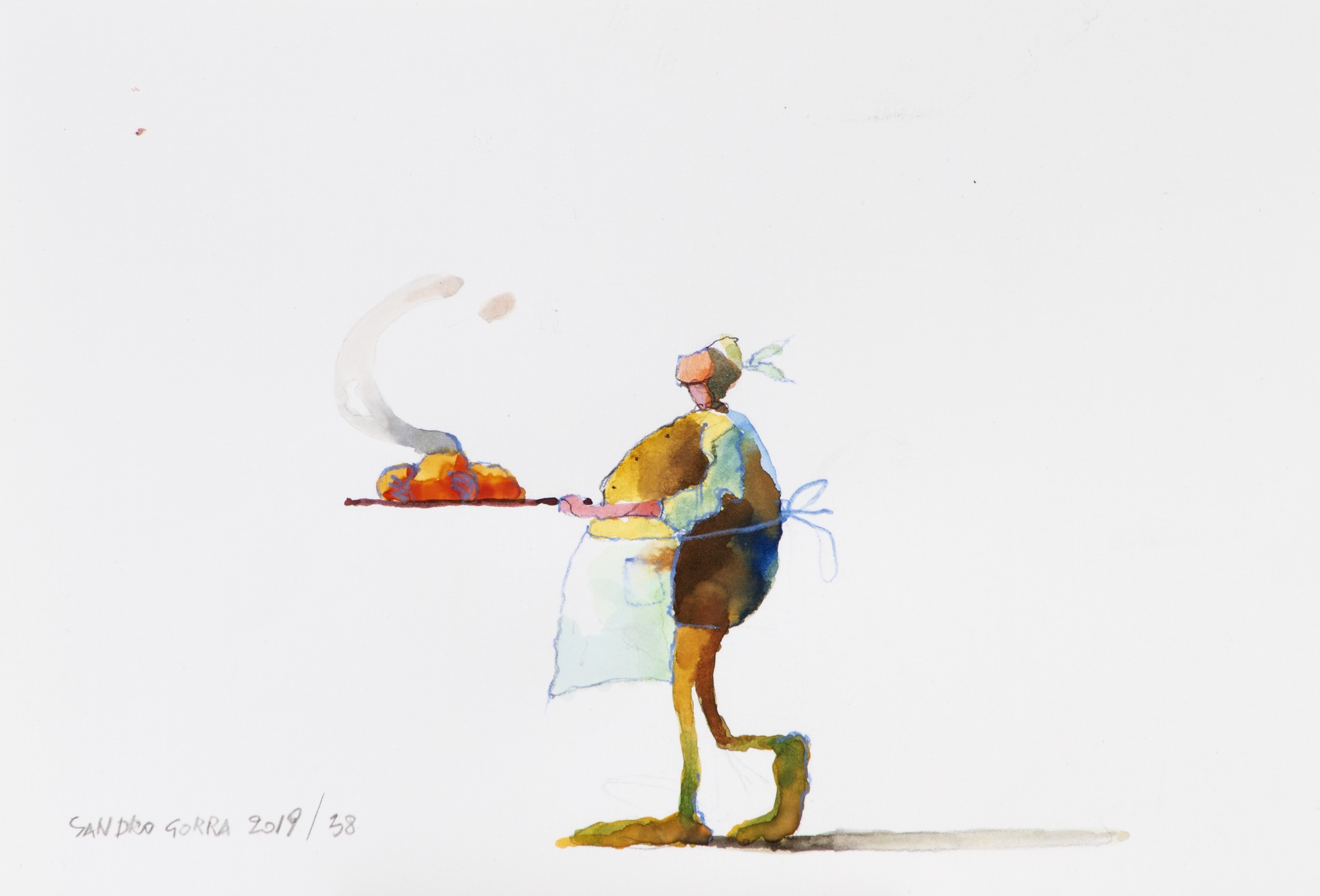 In the current of the Daily Art of Gorra they are the US: we are in our daily moments. Using ancient anilines on compact and super smooth surfaces, the pigment runs in the wet, creating deep colours and glassy glazes. Thus the painting loses the fixity of the sign and moves, “from one moment to the next I expect I hear voices and noises”. The size is fundamental: small because the brushstroke must not have time to define itself. Each work is unique.