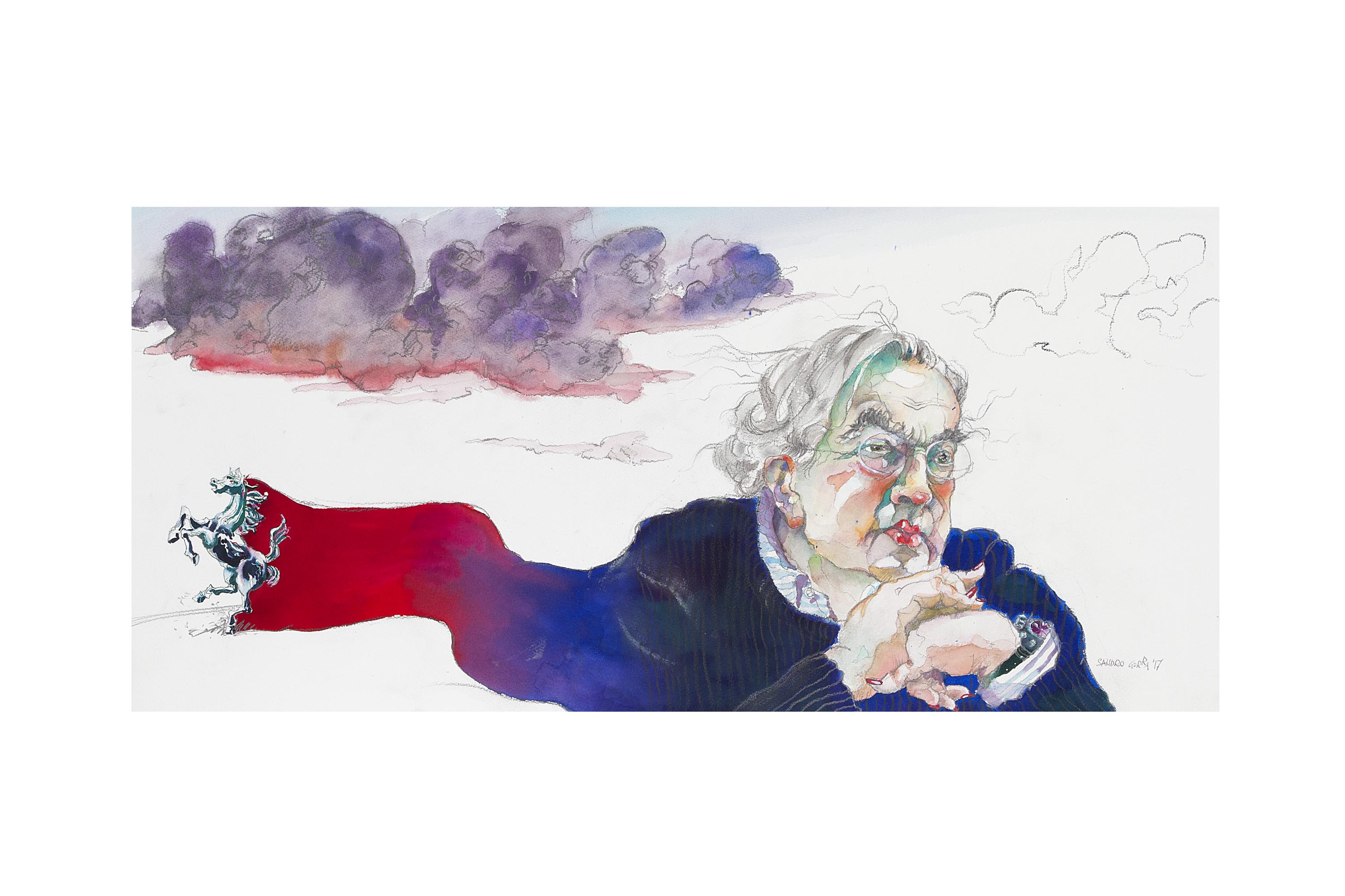 If you are born Giuseppe and end up Pino you can have a problem of reduced self-esteem. In the early sketches Pino was born with a hat and a bowtie together with the tourbillon mechanisms and the racing mufflers, in an attempt to keep him within the middle-class. Then the fragility became an important feature. And hat as well as bow tie disappeared in the sculpture.