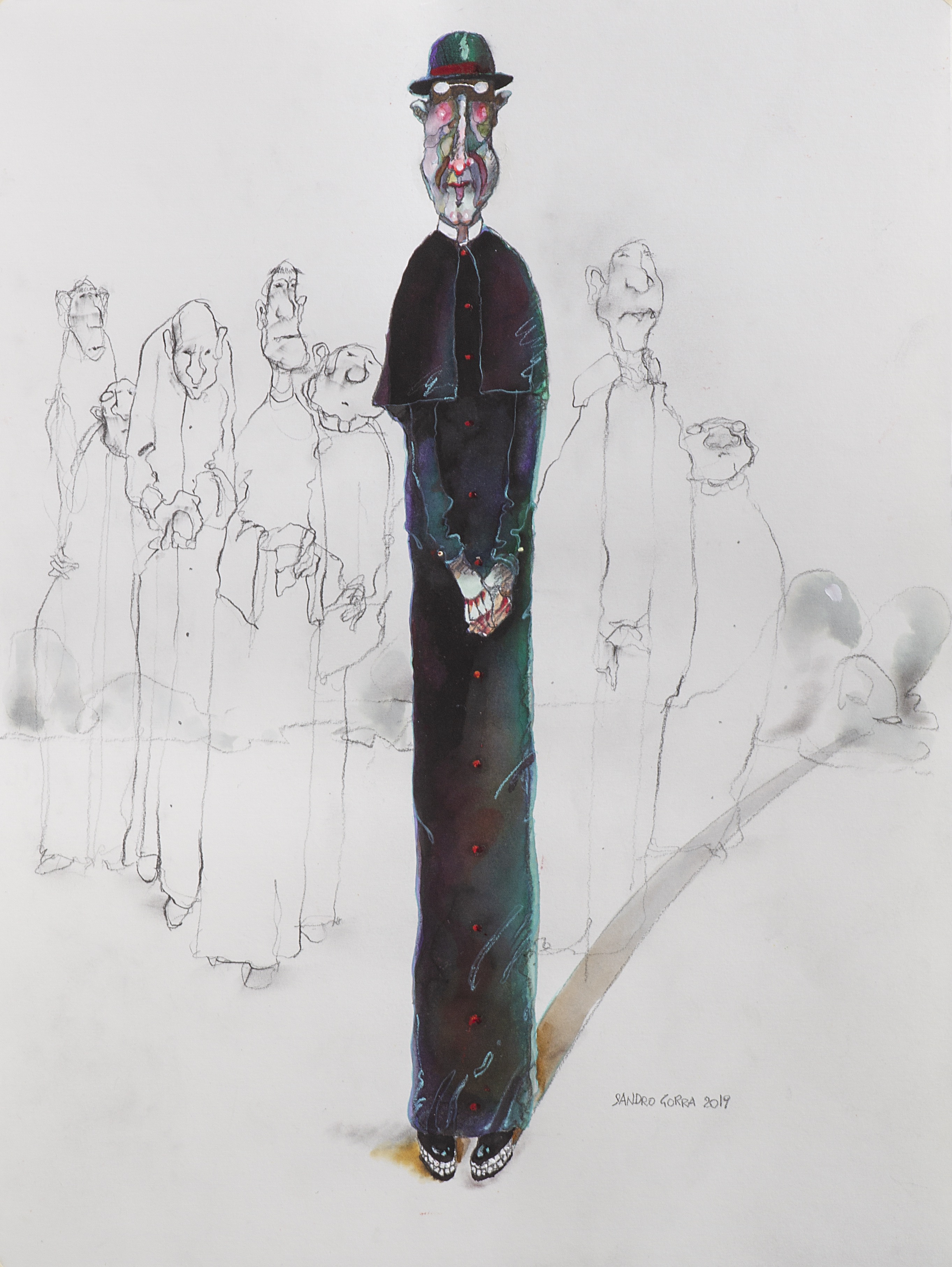 2020 Ink, watercolours, pencils, acrylics, choaks 76x57 cm.