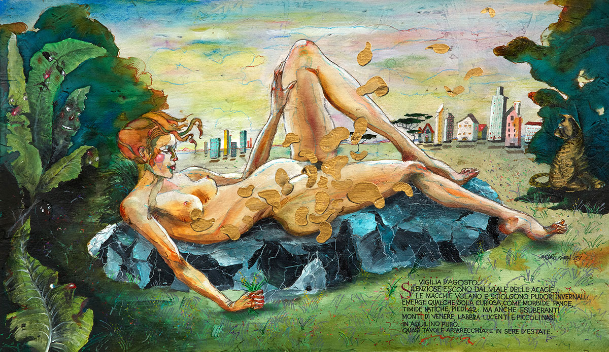Silenziose escono dal viale delle acacie… le macchie volano e sciolgono pudori invernali. Emerge qualche isola curiosa, come morbide pance, timide natiche, piedi 42. Ma anche esuberanti monti di venere, labbra lucenti e piccoli nasi in aquilino puro. Quasi tavole apparecchiate in sere d’estate.